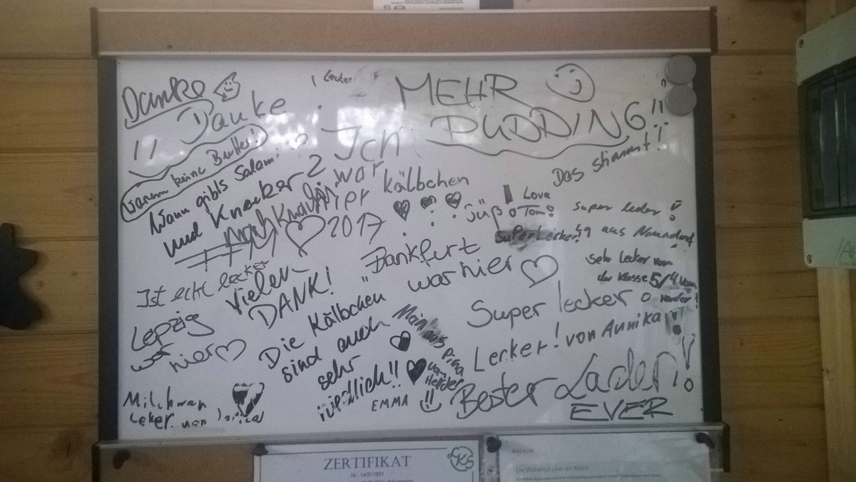 Die Vermarktung erfolgt über den kleinen Hofladen sowie über gekühlte Warenautomaten in Dorf und Stadt Wehlen. Am Produktionsstandort in Dorf Wehlen wird zusätzlich frische Rohmilch über einen Milchautomaten vermarktet (24/7). Ziel ist es, u.a. mit zahlreichen Betriebsführungen, dem Verbraucher die Landwirtschaft wieder etwas näher zu bringen.